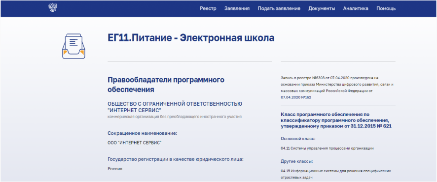 Разработанное нами ПО входит в “Реестр программного обеспечения Российской Федерации”